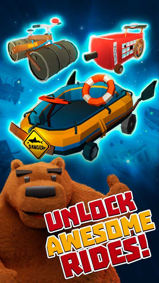 Crashing Season Run – это веселый экшен, в котором вы будете в роли сумасшедшего медведя или другого героя гонять на непонятных транспортных средствах по разнообразным трассам с кучей препятствий. Тут вы точно получите уйму положительных эмоций и заряд бодрости на весь день. Кнопки тормоза здесь не придумано, так что просто старайтесь проехать как можно дальше и собрать побольше наград и бонусов. Прокатитесь с ветерком вместе с безумными персонажами и оторвитесь на полную катушку.- десятки удивительных трасс;