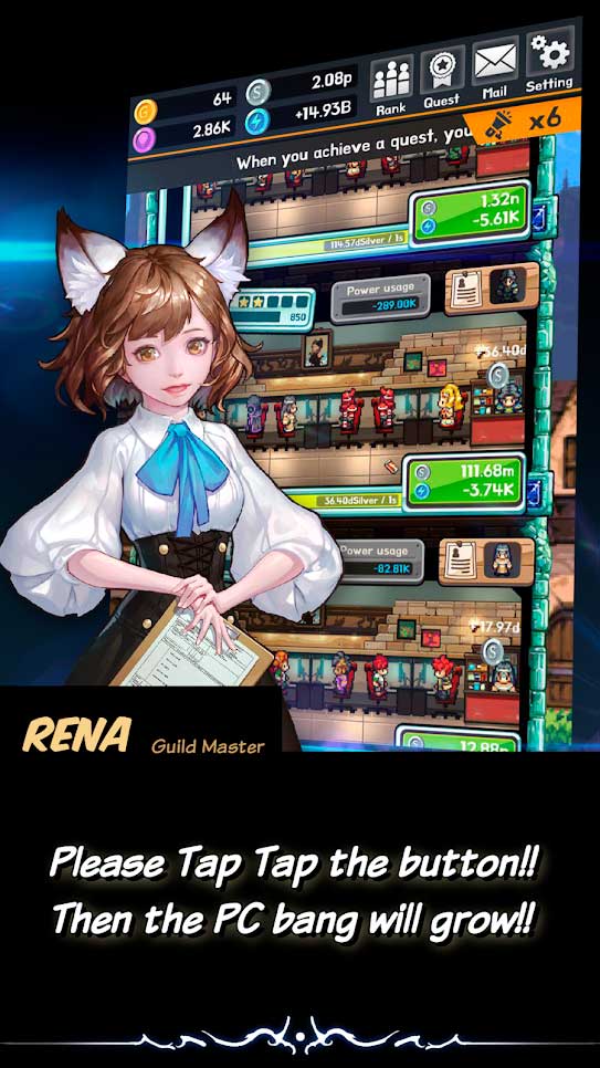 Fantasy world PC bang – это новая фэнтезийная игра в жанре бизнес-симулятора, в которой вы столкнетесь с массой уникальных персонажей и попадете в удивительный виртуальный мир. Простое управление и механика проекта позволяют развить свое производство до небывалых высот, открывая новые истории и ответвления сюжетной линии. Модернизируйте и расширяйте свой бизнес, вкладывая средства в разнообразные исследования. Открывайте новые магазины и раскручивайте игровые автоматы, чтобы увеличить прибыль.- оригинальный игровой процесс;