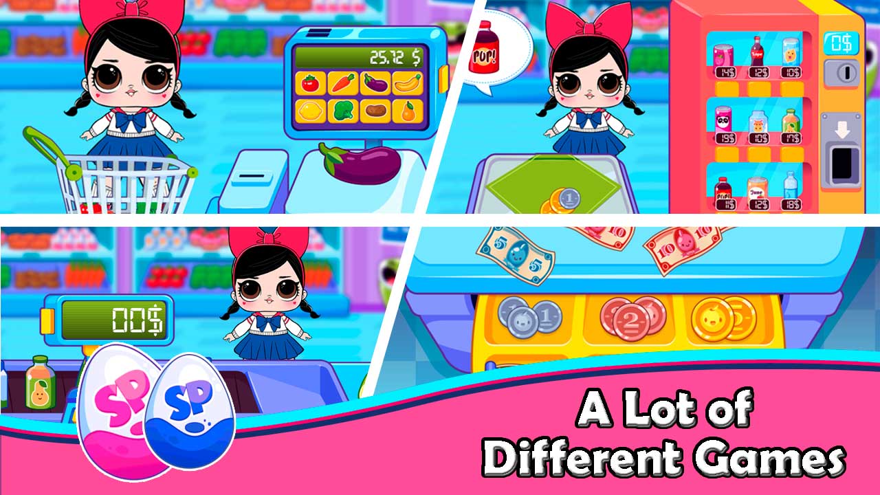 Dolls Games Grocery Store Supermarket Eggs – это занимательная детская игра, в которой представлена стандартная работа продуктового магазина. Играйте за покупателя или продавца, учитесь управляться с деньгами, занимайтесь продуктами и просто отлично проводите время. Также можно стать менеджером супермаркета и следить за работой продавцов и чистотой вокруг. Детям весело играть в это яркое увлекательное приложение, они с радостью занимаются шопингом и обслуживают клиентов магазина.- многочисленные мини-игры;