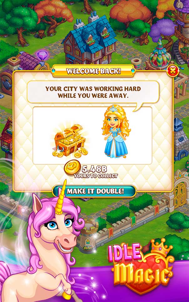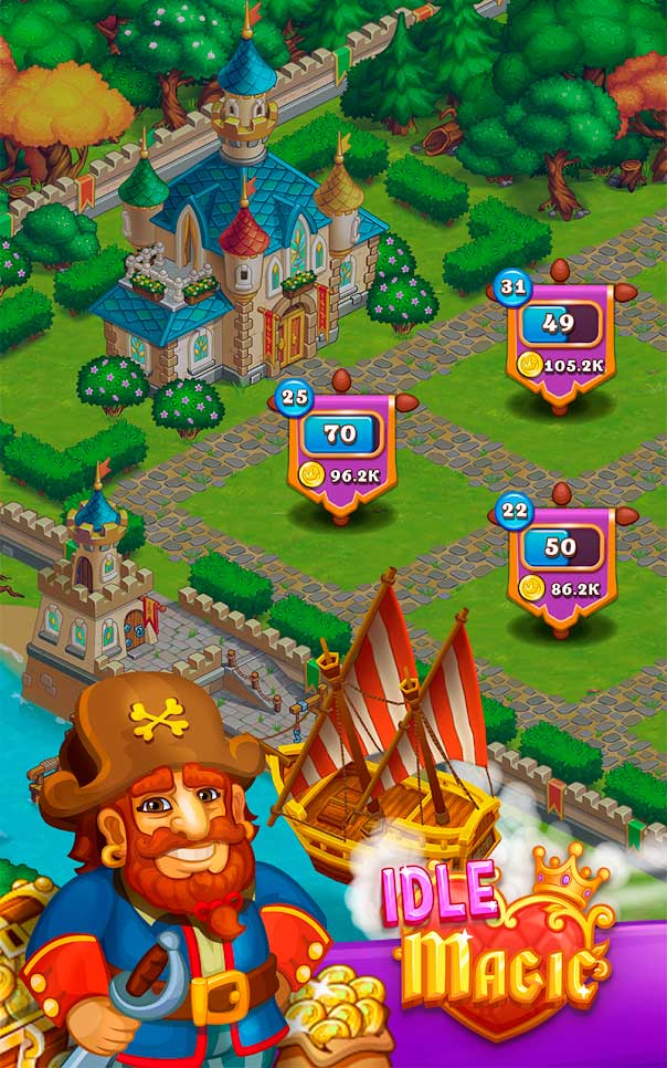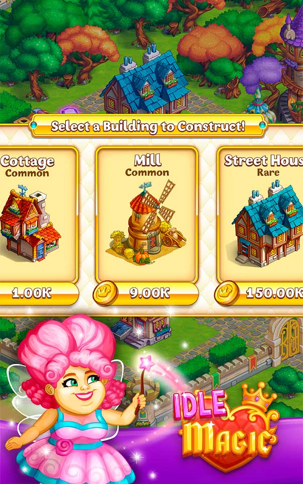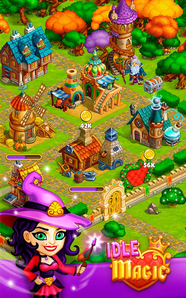 Idle Magic city – это захватывающие приключения в волшебной стране, где небольшая ферма фей под должным руководством может быстро превратиться в шикарный город. Игровая механика тут очень проста – нужно лишь вовремя нажимать на домики и собирать с них ценные монетки. Обитателями этого города являются всякие фантастические существа: эльфы, гномы, ведьмы, волшебники и даже могучие драконы. Наслаждайтесь неспешным игровым процессом, пока ваше сказочное королевство процветает.- разнообразные задания и улучшения;