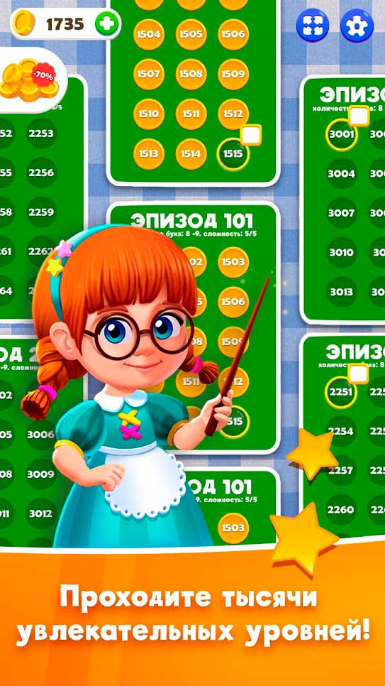 Словесный Соус – это занимательное словесное приложение, которое придется по вкусу всем любителям игр подобного жанра. Находите спрятанные в куче букв слова и отправляйтесь на новый уровень. Сложность игры будет постепенно увеличиваться, так что сконцентрируйтесь и постарайтесь разгадать каждую головоломку. В этой игре можно не только с интересом проводить время – тут вы также развиваете свой ум и словарный запас, что весьма полезно. Играйте один или вместе с друзьями напрягайте извилины, получая массу удовольствия от затягивающего игрового процесса.