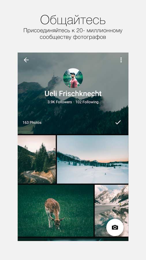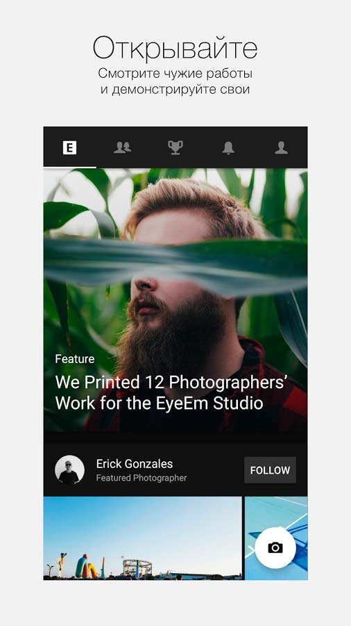 Обязательно попробуйте скачать EyeEm - Фото Фильтры Камера на андроид, потому что в приложении есть следующие преимущества:- Доступ к лицензированию фотографий с помощью официальных систем, ориентированных специально для этого;