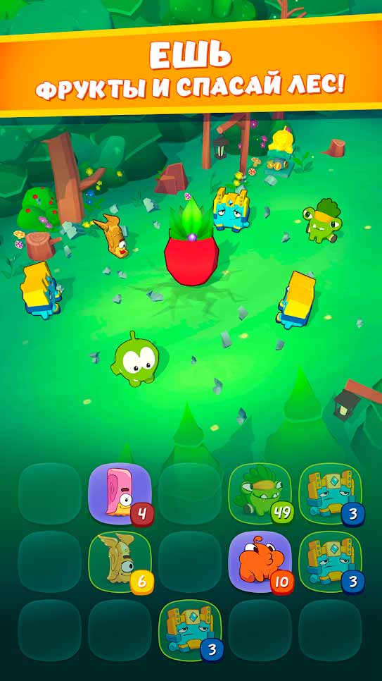 Ам Ням: Эволюция – это забавное приложение для мобильных гаджетов, в котором вы будете спасать волшебный лес, выступая в роли милых монстров. Слишком много фруктов появилось в лесу, и нужно срочно их все съесть, поэтому вместе с главным героем Ам Нямом и его друзьями номисами отправляйтесь лопать лакомства. Для усиления своих номисов объединяйте их, тогда чудики будут пожирать фрукты еще быстрее. Сочное и веселое приключение ждет вас.