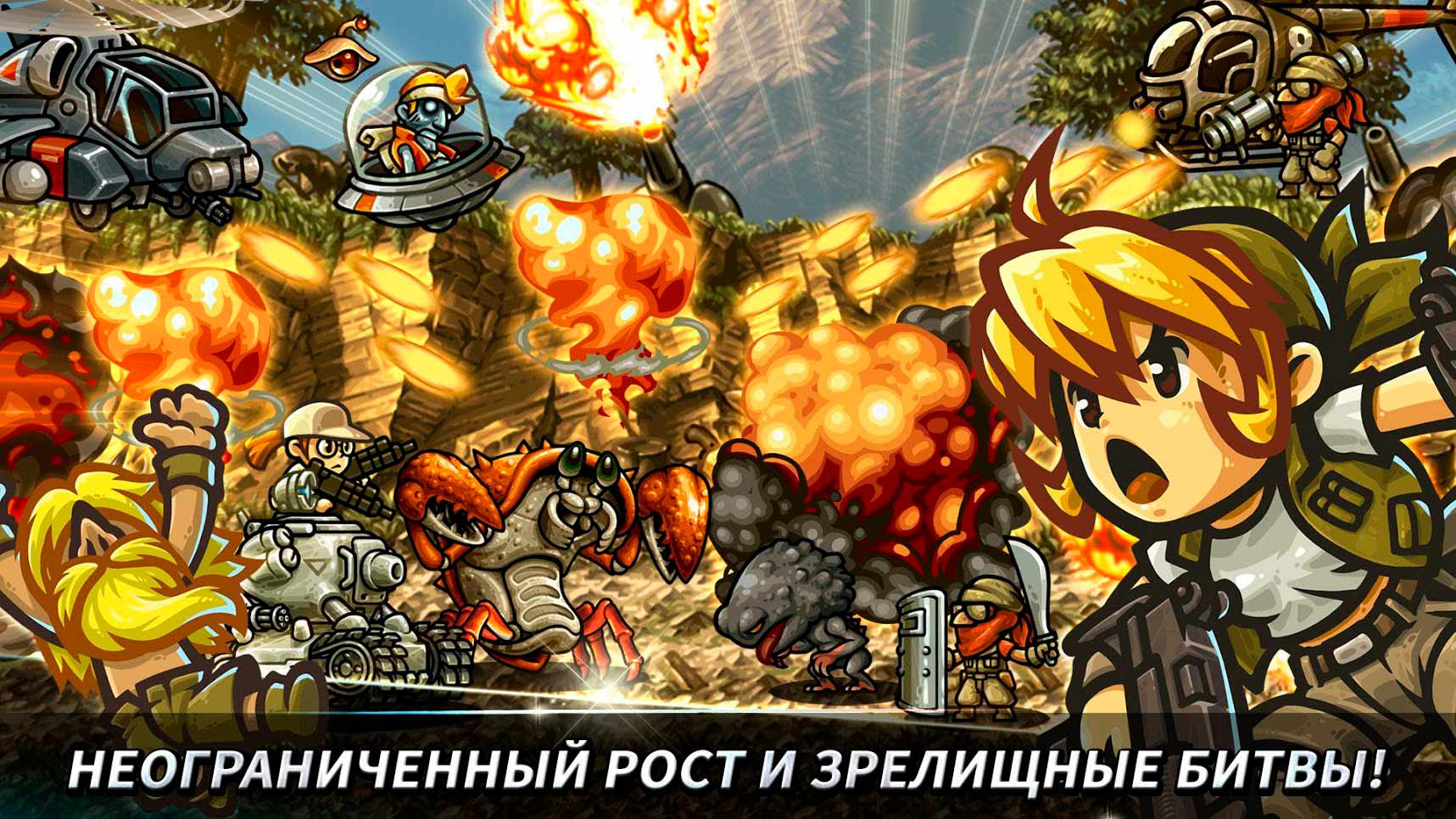 Metal Slug Infinity – это шикарная ролевая игра нового поколения, в которой вас ждут эпичные баталии с участием тяжелой техники. Собирайте свою команду героев, формируйте их оружейный арсенал и отправляйте в самое пекло боевых действий. Здесь на вас будут нападать многочисленные противники, представленные пришельцами, мумиями, зомби и многими другими опасными существами. Попробуйте победить их всех и займите почетное место в лидерской таблице.- захватывающая сюжетная линия;