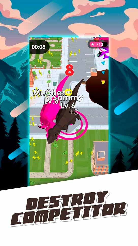 Stupid Dinosaur – это новая сумасшедшая игра для мобильных телефонов, в которой каждый желающий сможет почувствовать себя в шкуре страшного, хоть и необремененного особым умом динозавра. Думать такой зверюге тут толком и не нужно, ведь для победы достаточно лишь сожрать как можно больше людишек и нанести как можно больше разрушений всему окружающему фантастическому миру. Динозавров можно усиливать за собранные в процессе прохождения игры монеты.- сумасшедший игровой процесс;