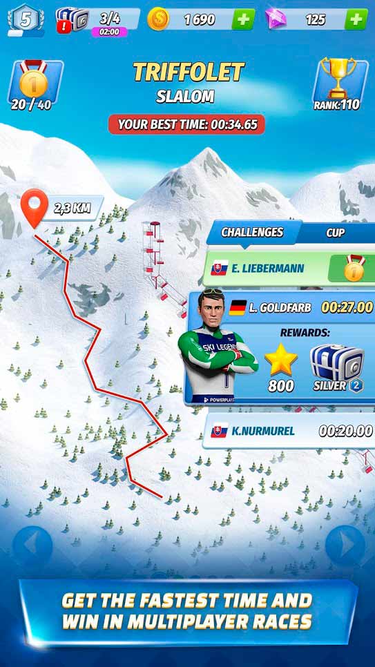 Ski Legends – интереснейший спортивный симулятор про гонки на лыжах. Посетите самые красивые места для зимнего курорта и займитесь своим любимым делом. Съезжая на огромной скорости с высокой горы, набирайте баллы, это поможет добиться победы над противниками. Захватывайте главные трофеи и призы, постарайтесь стать лучше и занять первую позицию. Профессионалы заберут все золото с этого турнира.
