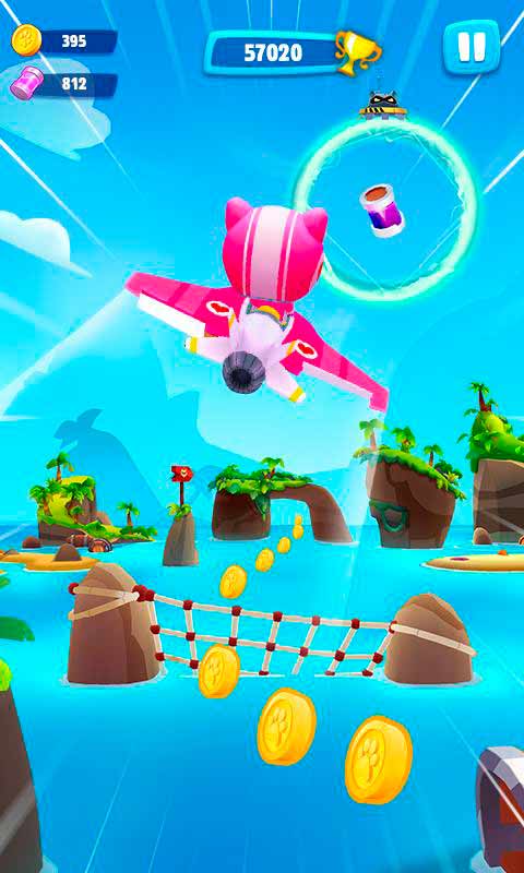 Говорящий Том: воздушный бег – приключения вместе с любимыми питомцами на самолетах. Познакомьтесь с енотами, которым не живется спокойно и они снова принялись за дело. Украли все источники энергии у Кота и его друзей, после чего пустились наутек. К тому же, им удалось прихватить с собой и приятелей Тома. Теперь на тебе лежит ответственность за них, путешествуйте на своем самолетике, и спасайте говорящих питомцев.Летайте по живописным локациям, научитесь крутить виражи на аппарате и улучшайте его, чтобы справиться с труднейшими препятствиями. Побеждая енотов, открывайте бонусы и собирайте игровую валюту.