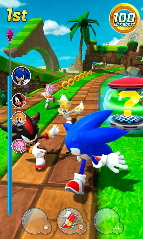 Sonic Forces – новая часть лучшего раннера про Ежика Соника, который пускается в бега. Участвуйте в соревнованиях против других пользователей в режиме реального времени, увеличивайте скорость и мчитесь вперед, опережая всех соперников. Это интереснейшая игра, с динамичным геймплеем и великолепной графикой в 3D. Для рывков можно пользоваться бонусами, а кроме того, своих оппонентов можно убирать с пути и нечестными способами.