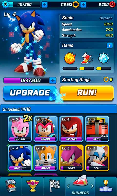 Все легендарные персонажи из серии Соника собраны в одной игре. Открывайте новых героев и участвуйте в бегах вместе с ними. Еженедельно появляются новые задания с эксклюзивными призами.