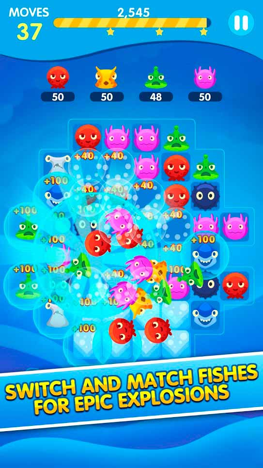 OceanParty – это забавная красочная игра с интересными головоломками и простыми правилами. Тут вы погрузитесь в удивительный мир приключений на дне океана. Среди множества разноцветных рыбок вам нужно отыскать комбинации одинаковых по цветам и убрать их с игрового поля. Включайте сообразительность, не забывайте про ловкость пальцев, и вы быстро пройдете даже самые сложные уровни, заработаете ценные награды и получите уйму удовольствия от процесса.Особенности игры: