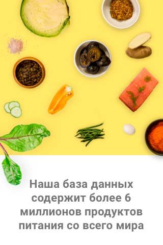 - Счетчик калорийности, собравший в себя больше 6-ти миллионов разнообразных блюд и продуктов;