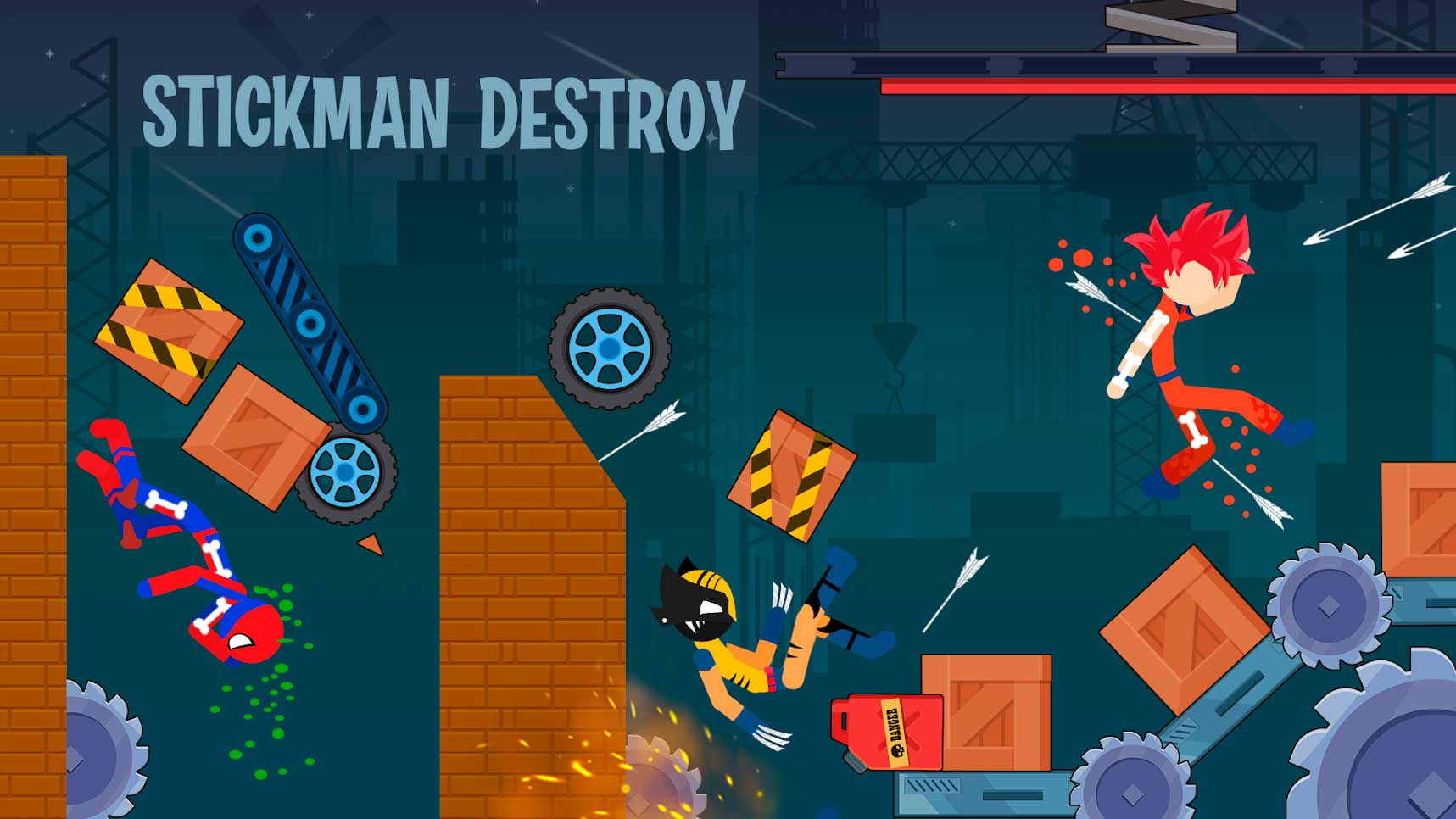 Stickman Destroy - Super Warriors Destruction – это крутой современный экшен, захватывающий всех любителей динамичных игр с первых же минут. Тут вы примете участие в ожесточенной гонке смерти, в которой повсюду лишь разрушение, уничтожение и бесконечная погоня за первенством. Берите выбранного вами манекена и кидайте его на врагов, наблюдая за последующими взрывами, трюками, сумасшествиями и драйвом от всего происходящего.- реалистичная физика;