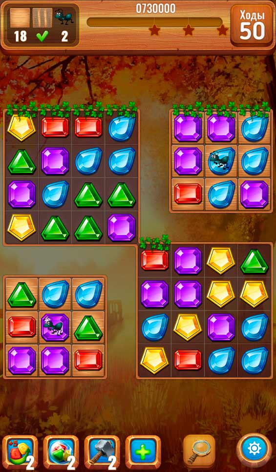 Новые самоцветы или кристаллы ? – это продолжение популярной игры для мобильных телефонов, в которой вам предстоит показать все свое умение разгадывать головоломки в жанре «три в ряд». Выбирайте подходящую сложность и начинайте проходить уровень за уровнем, отдыхая за приятным игровым процессом. Красочные фоны радуют глаз, вместе с отличным музыкальным оформлением создавая уникальную атмосферу спокойствия, столь знакомую всем любителям приложений подобного жанра.