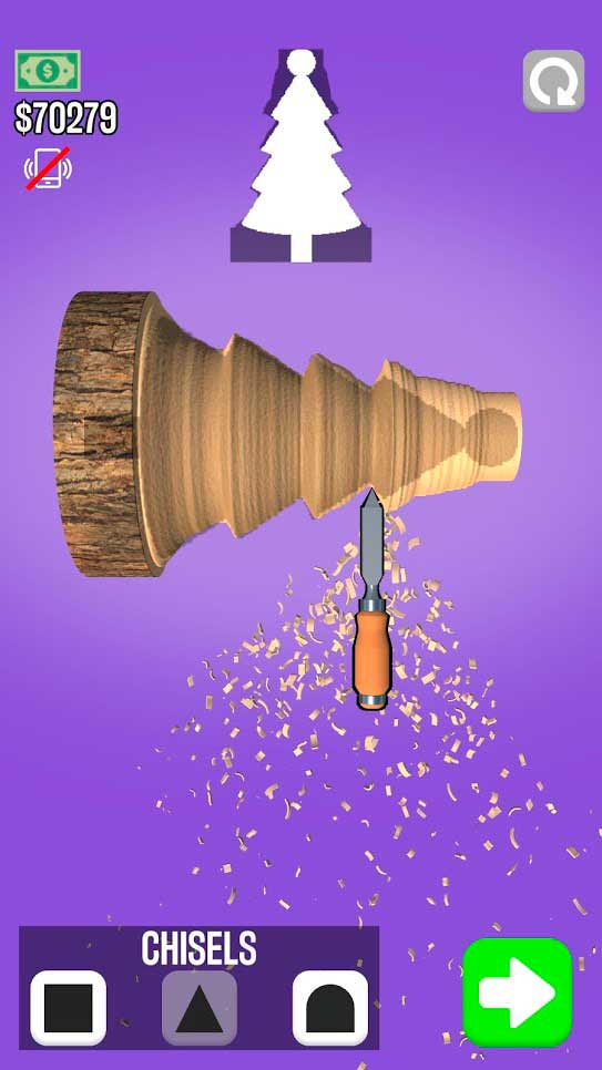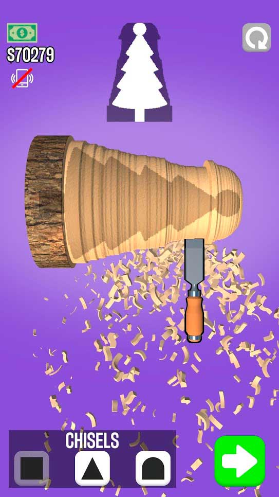 Woodturning – простая аркада, она поможет расслабиться и собраться с мыслями. Выполняйте простые действия, например, вырезайте из дерева елочку или любые другие предметы. Как только ваша заготовка будет готова, ее нужно будет раскрасить при помощи баллончика. Выполняйте простейшие действия, от которых будет сложно оторваться. Используйте лобзики самого разного размера или окончания. После того как закончите вырезать, берите шлефовочный материал и продолжайте обработку полученной фигуры. Эта 3D игра понравиться всем возрастным категориям, особенно дети будут в восторге от ее функционала.