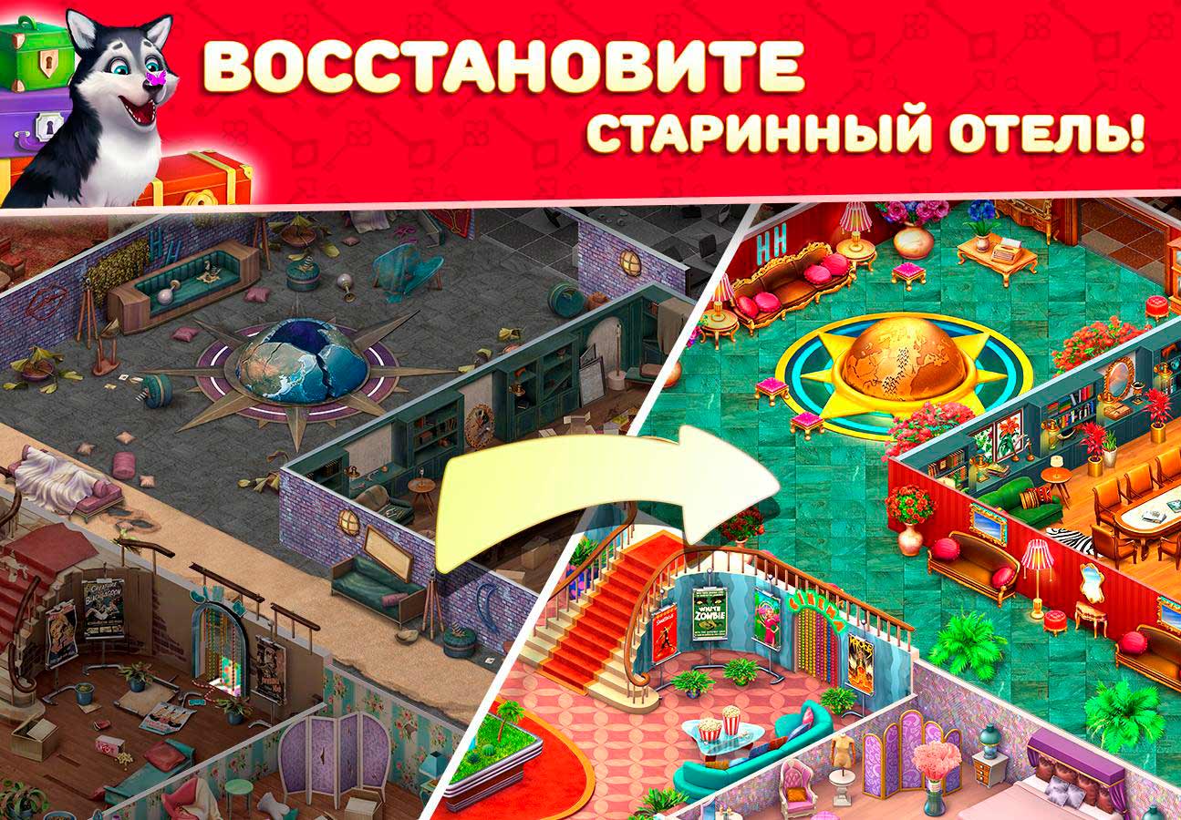 Hotel Blast – головоломка с интересным сюжетом про открытие одного из лучших в мире отелей. Главное преимущество у этой игры заключается в захватывающем сюжетном режиме, по ходу которого пользователей ожидают интриги и тайны. Составляйте комбинации и взрывайте бустеры, детективная история полна загадок. Расследуйте самое громкое преступление и продолжайте создавать отель. Есть больше 100 элементов для украшения интерьера и мебели, которая поможет вам добиться прекрасного результата. Продумано и добавлено больше 100 уровней, есть призы, турниры и многое другое. Эта атмосфера будет интриговать с каждым новым этапом все больше.Информация об игре