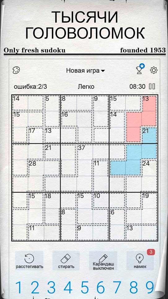 Судоку – это знаменитая на весь мир игра, представленная здесь в виде мобильного приложения. Тут вы каждый день можете тренировать свой мозг и увлекательно проводит время за разгадыванием очередных загадок. Приложение будет интересно как новичкам, так и бывалым игрокам, ведь сложность уровня всегда можно настроить под каждого конкретного пользователя. Тренируйте свою память и логическое мышление, чтобы стань настоящим чемпионом этой увлекательной игры.