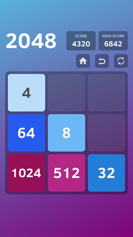 2048 – это классическая головоломка для мобильных устройств, в которой нужно соединять одинаковые числа, чтобы в итоге получить 2048. Принцип игры весьма прост, но стратегия может быть очень интересной и разнообразной. Выбирайте подходящее из игровых полей, которых в приложении представлено 5 видов, и начинайте свое путешествие к числовой бесконечности, ведь продолжать игру можно и после достижения заветного числа 2048.