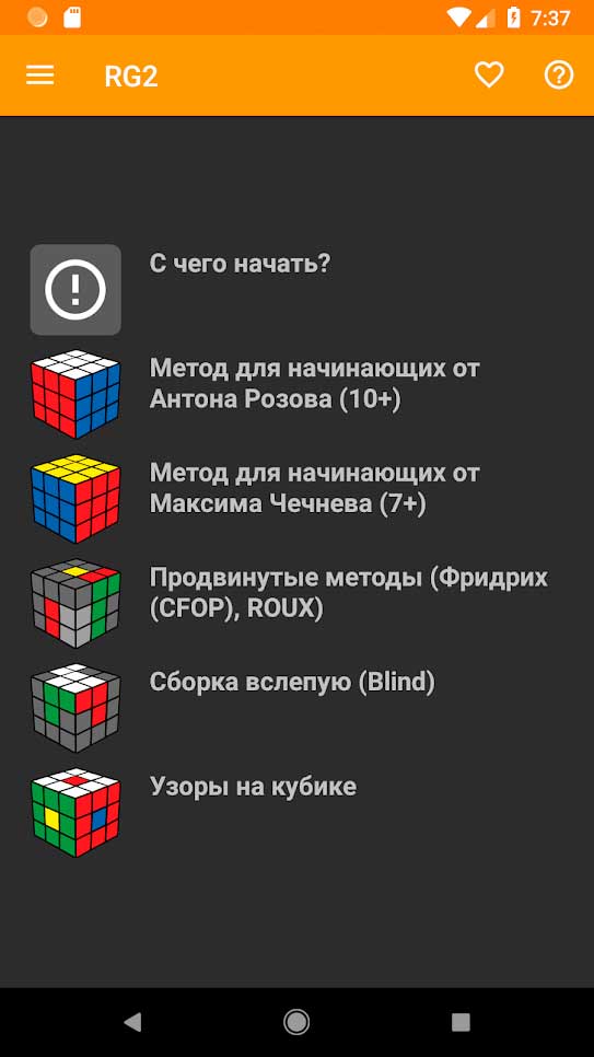 RubicsGuide 2 - обучение сборке кубика Рубика – это весьма интересная программа, которая поможет любому желающему научиться собирать знаменитый кубик Рубика. Здесь все объяснено до самых мелочей, так что можно начать с простейшего детского метода сборки и постепенно прийти к сборке с закрытыми глазами. Изучайте различные методики и определите оптимальный для себя. К тому же здесь вы найдете множество других не менее интересных головоломок, так что за этим приложением скучать точно не придется.