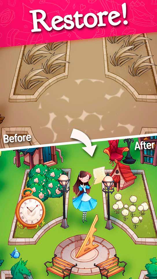 Alice Legends – волшебные приключения в Стране Чудес, где вы соберете всех сказочных персонажей и сможете посетить Королеву Червей, с ней и грядет самое серьезное сражение. Побеждайте миньонов, охрану злодейки, выигрывайте на новых уровнях с волшебными историями и постепенно восстанавливайте большую Страну Чудес. Получите особые способности для продвижения по уровням исследуйте огромный мир в 3D и встречайтесь с любимыми героями. Очень красивый игровой мир понравится девочкам, они смогут шаг за шагом изменять дизайн сада или крепости, делая его чуточку веселее и добрее. В вашей коллекции появится много новых друзей животных.