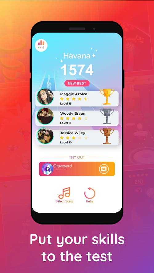 Game of Songs – это интересная музыкальная игра, в которой собрано множество классных песен. Тут представлены лучшие мобильные приложения данного жанра, так что все ценители хорошей зажигательной музыки будут рады найти среди них игру по душе. Проверьте скорость своей реакции, вовремя нажимайте на экран и устанавливайте рекорды. Двигайтесь под ритмичные песни и наслаждайтесь отличной графикой, открывая все новые музыкальные игры, которых каждую неделю становится все больше.