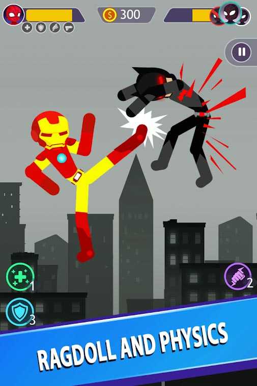 Stickman Battle – это забавный и весьма популярный мобильный экшен, в котором вы примете участие в шикарных дуэльных битвах. Управляйте непомерно гибким персонажем в образе выбранного вами супергероя и побеждайте многочисленных противников. Используйте все возможные способы, что вывести соперника из строя, и вы станете величайшим чемпионом этих бешеных баталий. Покажите все свое мастерство, сноровку и ловкость, чтобы завоевать столь почетный в этом ярком виртуальном мире титул.