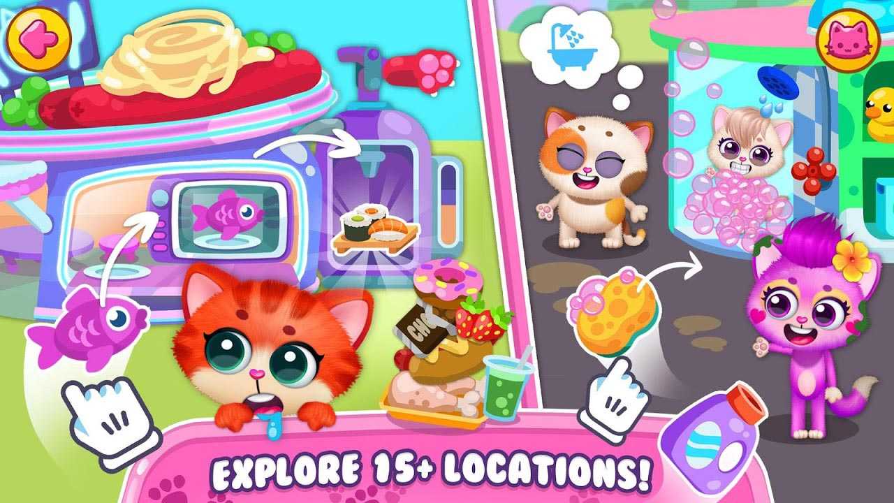 Little Kitty Town – это милая обучающая игра для детей, в которой вы встретите кучу веселых котиков, готовых стать вам отличными друзьями. Всем любителям сюрпризов и экспериментов в таком удивительном приложении всегда найдется занятие по интересам. Заведите знакомство с котенком-роботом, прогуляйтесь по всевозможным магазинчикам, изучите красочный город, пообщайтесь с его пушистыми обитателями, находя себе новое приключение на каждый день.