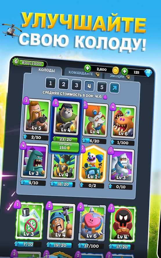 World War Doh – это увлекательная карточная стратегия для мобильных платформ, в которой вас ждут эпичные баталии и яркие персонажи. Управляйте командой отважных бойцов, побеждая противников при помощи искусного планирования и грубой силы. Создайте непобедимую колоду и уничтожьте кучу врагов, чтобы стать настоящим героем в этой удивительной виртуальной вселенной. Докажите другим игрокам свое превосходство и завоюйте их базы. Участвуйте в забавных сражениях и наслаждайтесь сказочной атмосферой приложения и его высочайшим качеством.Особенности игры: