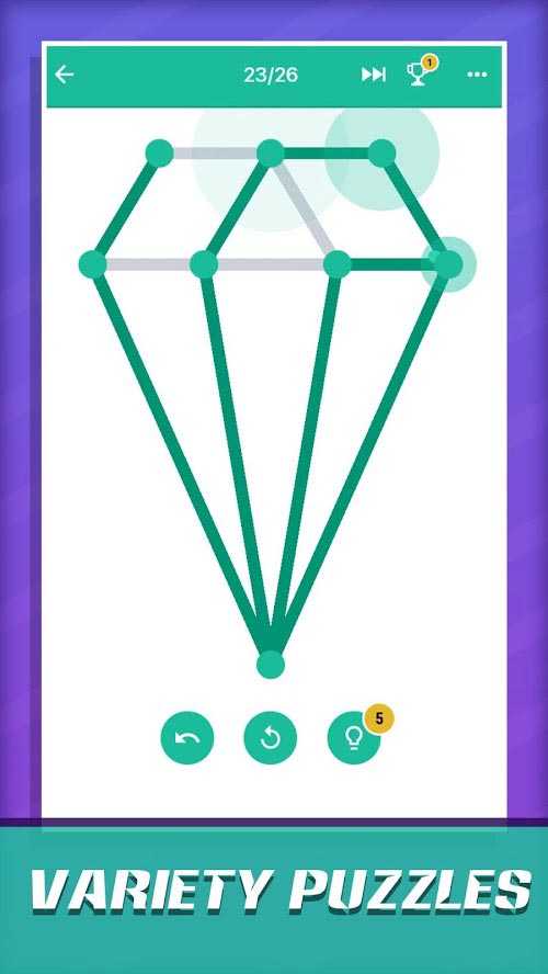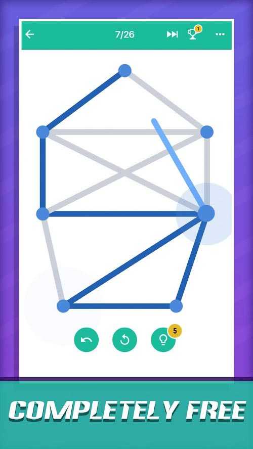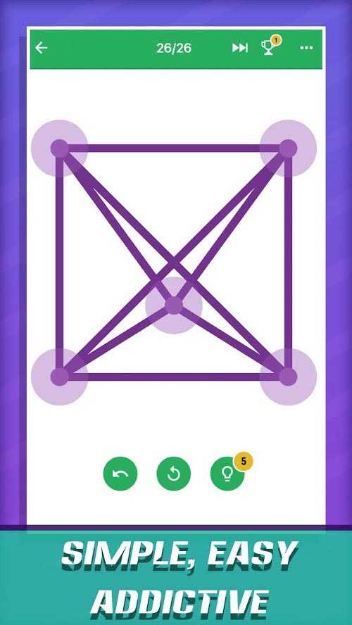 Draw 1 Stroke – это захватывающее мобильное приложение, в котором нужно соединять точки одной линией. Простая на первый взгляд механика подразумевает большое количество интересных головоломок, они придутся по вкусу всем любителям поразмять мозг. Проходите очередной уровень и отправляйтесь на новый. Сложность задач постепенно повышается, так что приготовьтесь изрядно попотеть, чтобы решить все представленные головоломки.Особенности игры: