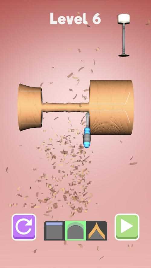 Wood Shop – это уникальное мобильное приложение, открывающее для всех желающих удивительный мир резьбы по дереву. Здесь из деревянных блоков рождаются чудесные вещи, и вы управляете всем этим процессом. Начинайте с обрезки блока до нужной формы, для этого у вас есть три специальных инструмента. Когда форма готова, останется отшлифовать и покрасить деталь – тогда вы получите готовое изделие и откроете новый уровень. Тренируйтесь, и вскоре вы станете настоящим мастером резьбы по дереву.