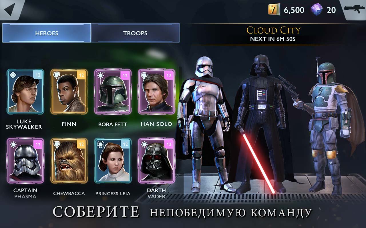 Игрок ежедневно сможет выдвигаться на мировую арену многопользовательского режима и сражаться с сотнями игроков по всему миру. Каждая предстоящая битва будет особенно напряженной и интересной. Участвуйте в эпических битвах и перестрелках с помощью огромного вооружения и знаменитых персонажей Звездных Войн. Собирайте свой собственный отряд из героев, чтобы получать преимущество над соперниками. Здесь есть все существующие по фильму герои Дарт Вейдер, люка Скайуокер и множество других. Оснащайте их мощным оружием и выводите на арены, где сможете участвовать в битвах.Информация об игре