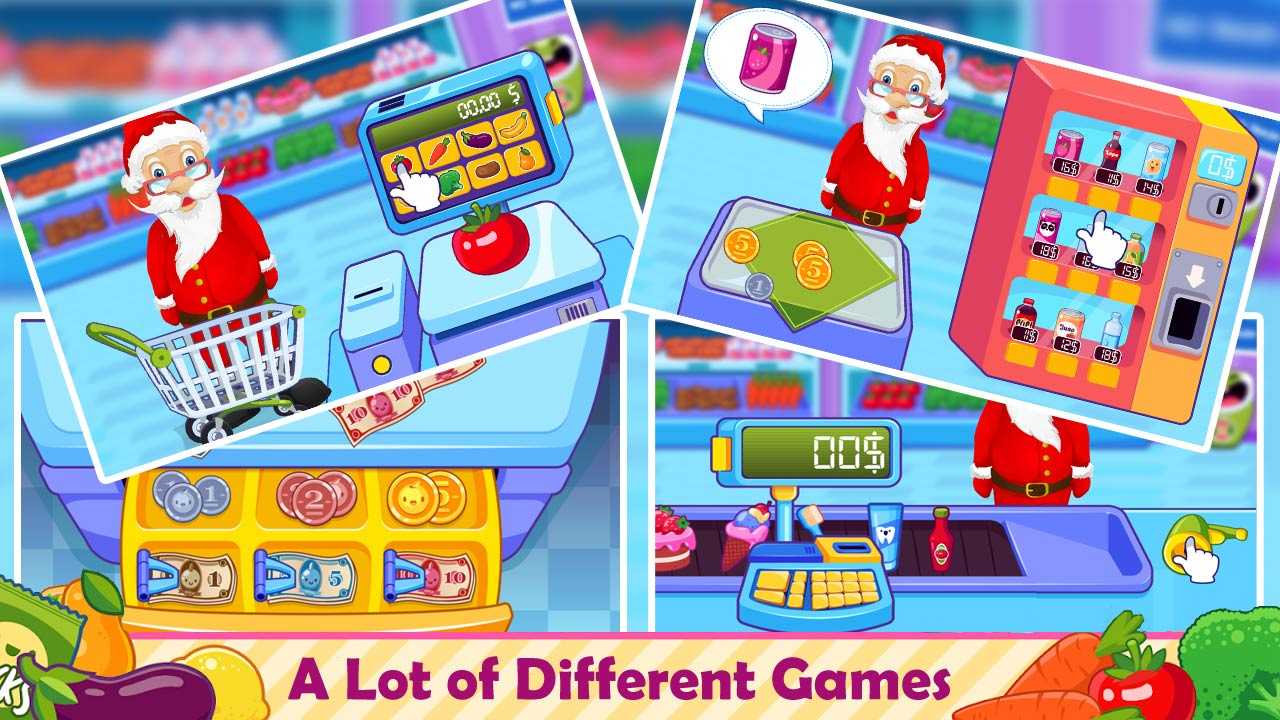 Santa Supermarket Shopping – веселый шопинг Санта-Клауса по магазинам, пришло время закупаться продуктами. Отправляйтесь в большой магазин, где вас ждет большой выбор продуктов. Найдите все необходимое по списку и отправляйте в корзину, после чего отправляйтесь на кассу и рассчитайтесь деньгами. Отдельные категории товаров научат выбирать правильно. Приобретайте в бакалеях мясо, овощи, напитки и многое другое, сладости в отдельном отделе, фрукты и прочее тоже. Кроме как за покупателя, пользователи смогут испытать себя в роли кассира и рассчитывать клиентов. Красивая нарисованная графика должна понравиться детям.Информация об игре