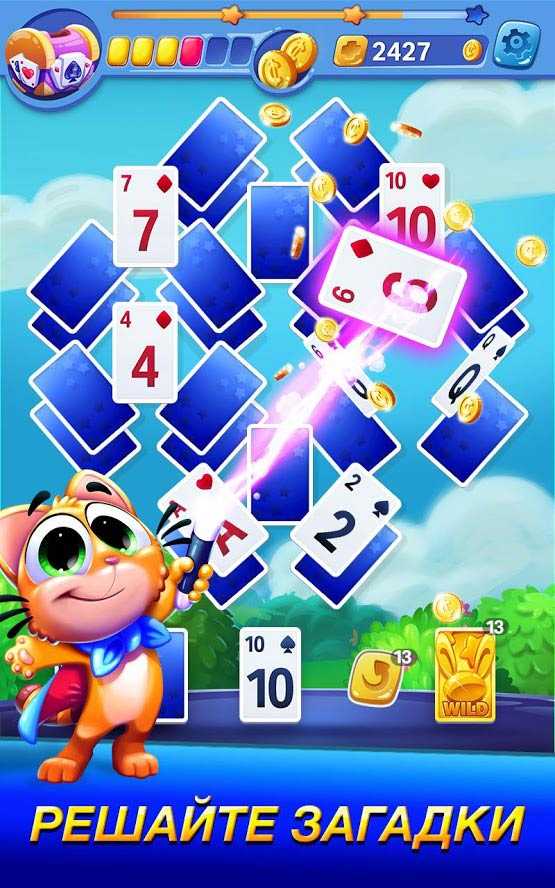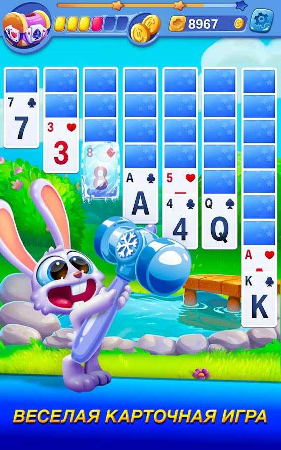 Время пасьянса – это веселая карточная игра для мобильных платформ, где вас ждет необычный пасьянс с котом и кроликом. В приложении сочетаются несколько оригинальных игр, увлекательный симбиоз которых оценят все любители отличных головоломок. Тут вы с первых же минут погрузитесь в удивительную атмосферу, моментально притягивающую взгляд. Магия азарта вместе с яркими визуальными эффектами, колоритными персонажами, простой механикой и многими другими преимуществами проекта подарят вам кучу волшебных моментов и радостных эмоций от игрового процесса.