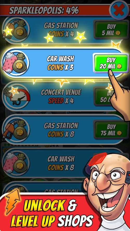 Tap Empire – это увлекательный мобильный кликер, в котором вы займетесь развитием бизнеса. Нажимайте на экран, чтобы заработать побольше денег, и продвигайте свое дело. Здесь вас ждет множество захватывающих уровней с уникальными испытаниями, от которых сложно оторваться. Получайте все больше золотых монет и исследуйте бесконечные империи, продолжая открывать все новые игровые возможности. В путешествии вы встретите колоритных героев, которые помогут вам с заработком. Автоматизируйте свою систему добычи денег, продолжайте ее расширять и просто наслаждайтесь интересным игровым процессом.