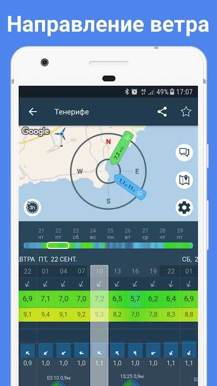 - интерактивная карта ветра;