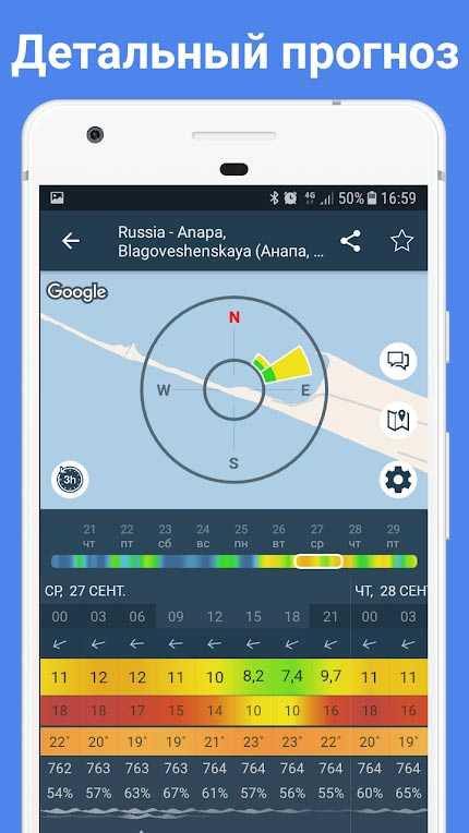 - подробный прогноз погоды;