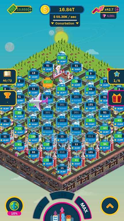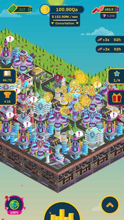 Skyward city: Urban tycoon – это увлекательный мобильный симулятор градостроительства, в котором вы сможете создать собственную империю и расширить ее до небывалых размеров. Развивайте свой город с нуля, обустраивая новые районы и нанимая мэров для эффективного управления. Копите богатство и делайте выгодные инвестиции, тогда вы сможете быстро привести свой город к процветанию. Увеличивайте количество жилых мест, чтобы население вашей империи стабильно росло.Особенности игры: