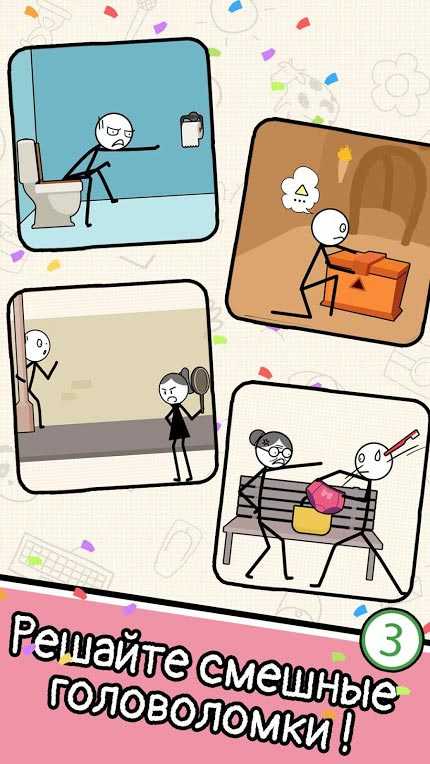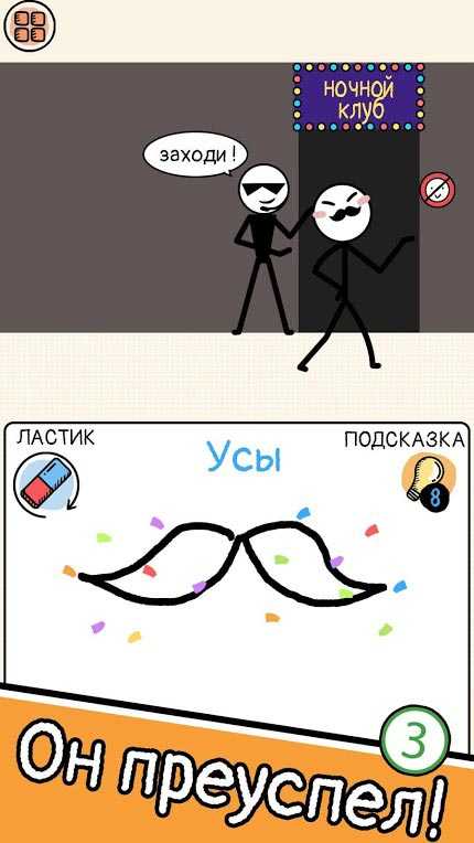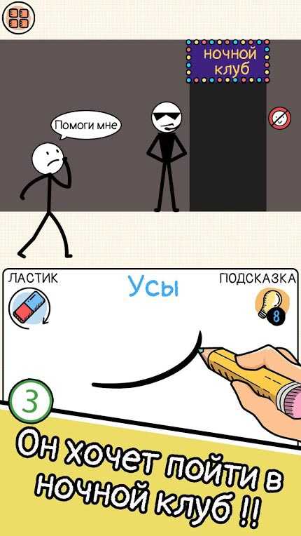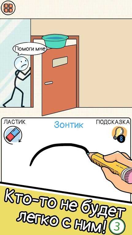 Draw puzzle: sketch it – это классная мобильная головоломка, в которой вас ждет проверка умственных способностей и куча забавных моментов. Попробуйте пройти на время все испытания, рисуя на экране ответы, чтобы ваш герой смог выпутаться из самых необычных ситуаций. Он то и дело оказывается в неловком и порой очень забавном положении, так что без вас ему точно не справиться.Особенности игры: