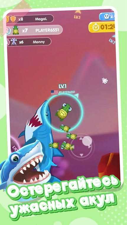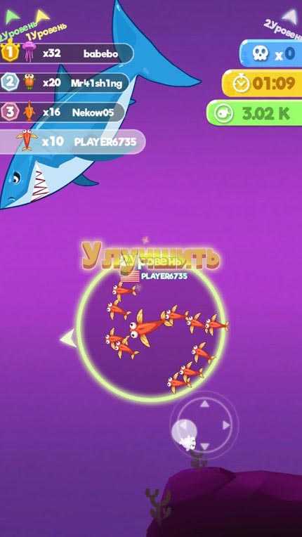 Fish Go.io – это веселый мобильный экшен, в котором вас ждут удивительные подводные приключения. Здесь вы соберете собственную команду рыб, исследуете огромные просторы и решите кучу классных головоломок. Плавайте по океану и поедайте других рыб, чтобы стать сильнее. Не попадайтесь акулам на глаза, иначе хорошим это не закончится. Увеличивайте численность своего косяка и открывайте новые игровые возможности.