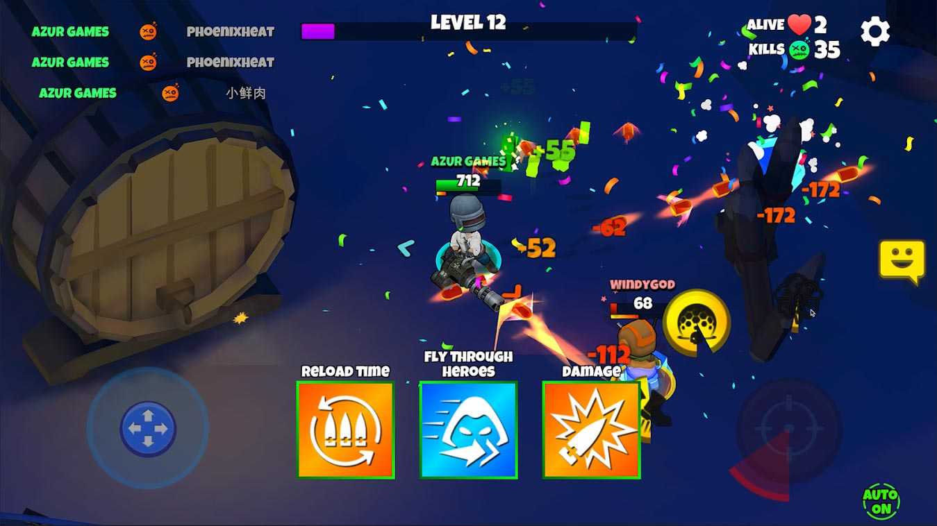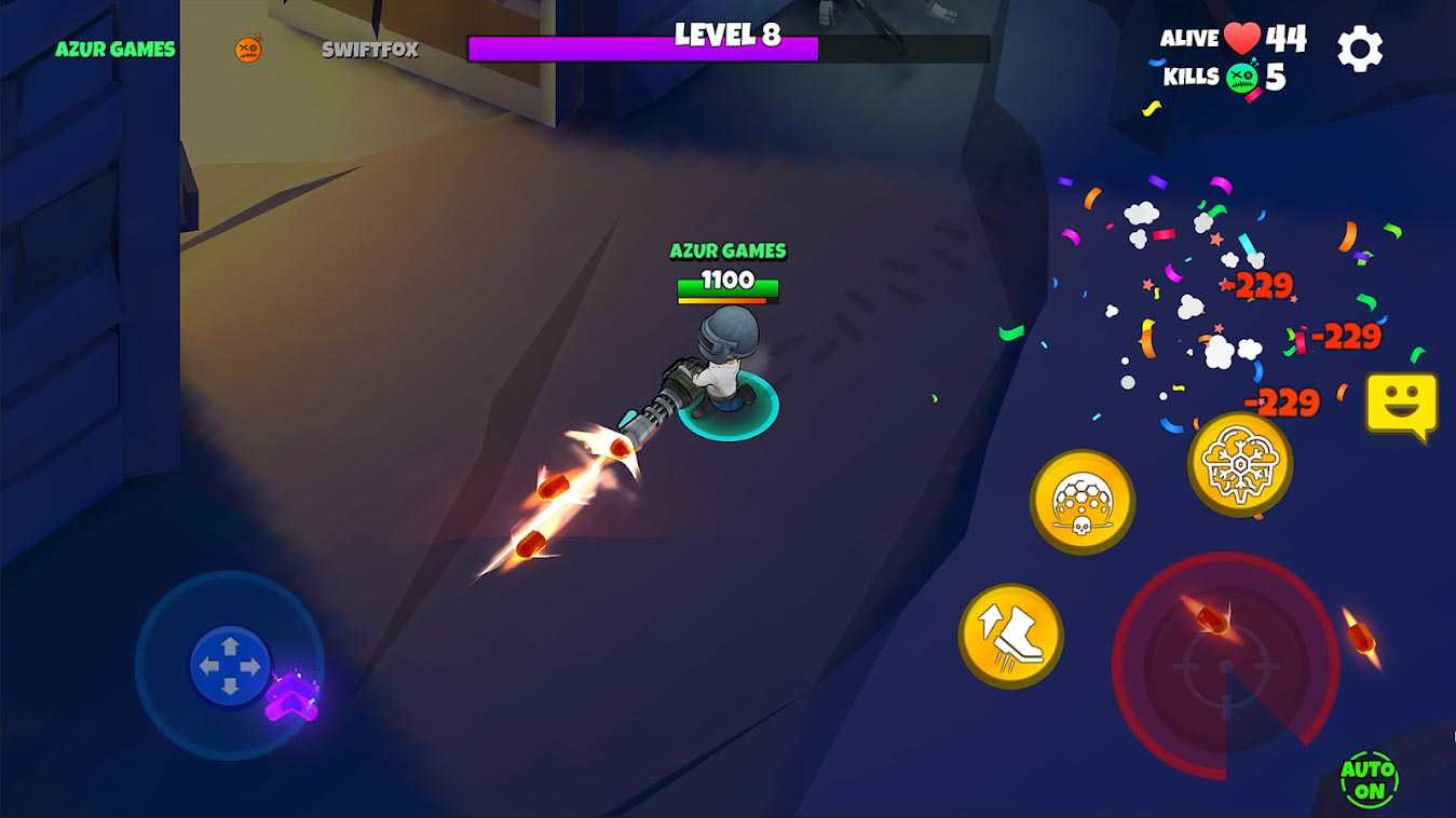 Warriors.io – это увлекательный многопользовательский экшен в жанре королевской битвы, где вы будете управлять забавными мини-солдатами. На выбор вам предлагается разнообразное оружие, так что каждый найдет пушку под любимый стиль игры. На поле боя валяется немало полезного добра, которое может весьма неплохо усилить вашего героя, так что не стоит им пренебрегать. Настраивайте персонажа, используя всевозможные яркие скины, чтобы выделиться среди огромной массы героев. Помимо режима битвы с реальными игроками есть и обычное одиночное сражение с компьютером, где вы всегда можете потренироваться перед ответственными многопользовательскими баталиями.