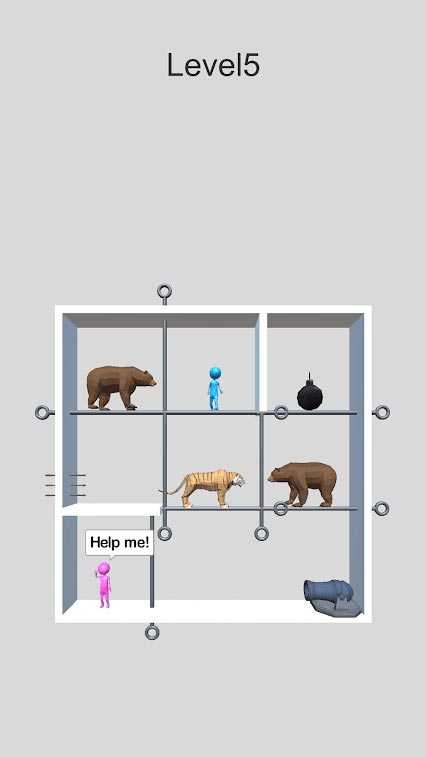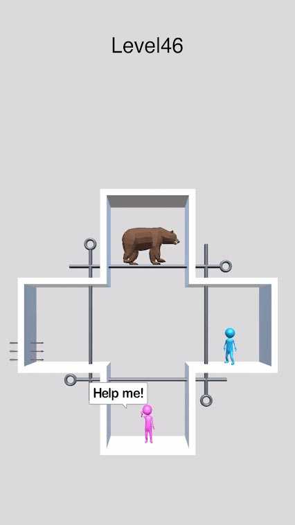Love Pins – это незатейливая игра-головоломка, в которой вы будете вызволять попавших в беду человечков. Для этого необходимо в нужном порядке удалить штифты, иначе персонажи окажутся съедены дикими животными, расстреляны из пушки или еще что похуже. На первых порах игра может показаться слишком простой, но не стоит расслабляться – это лишь предварительные обучающие уровни, ведь дальше они пойдут куда интересней и сложней.