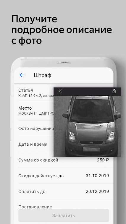 Яндекс.Штрафы – это весьма полезное мобильное приложение, помогающее его пользователям с оплатой штрафов ГИБДД и во многих других финансовых вопросах. Используя данную утилиту, вы автоматически получаете скидку на штраф в размере половины от его суммы. Настройте программу, чтобы оперативно получать уведомления о новых штрафах и другие важные новости. Здесь вы всегда можете просмотреть подробную информацию, включая фото автомобиля и место нарушения на карте. Сохраняйте документ с печатью, вся информация об оплате находится в деталях платежа. Оплачивать штрафы через это приложение можно несколькими распространенными способами, что заметно облегчает жизнь всем водителям.Информация об игре