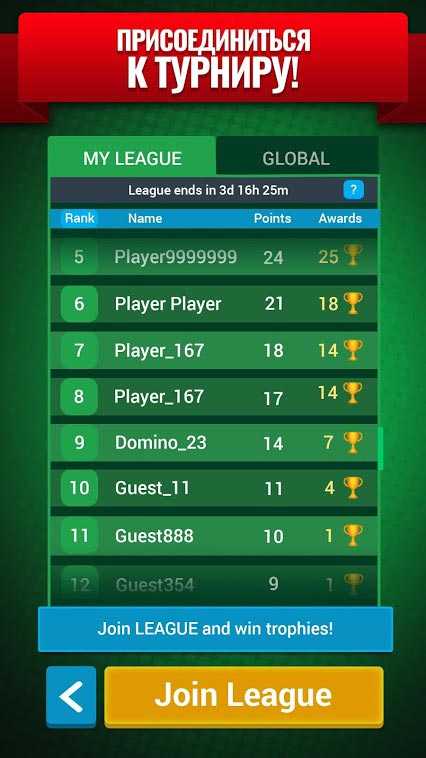 Домино – это знакомая многим с самого детства игра, представленная в виде удобного мобильного приложения. Несколько различных режимов и уровней сложности делают это развлечение еще интереснее. Выбирайте классическое домино, блок-режим или пятерочку – у каждого из вариантов есть свои особенности, плюсы и минусы. Интуитивно понятный интерфейс, отличная графика, простое управление, захватывающие турниры и другие преимущества игры сразу понравятся не только любителям жанра, но и начинающим игрокам.