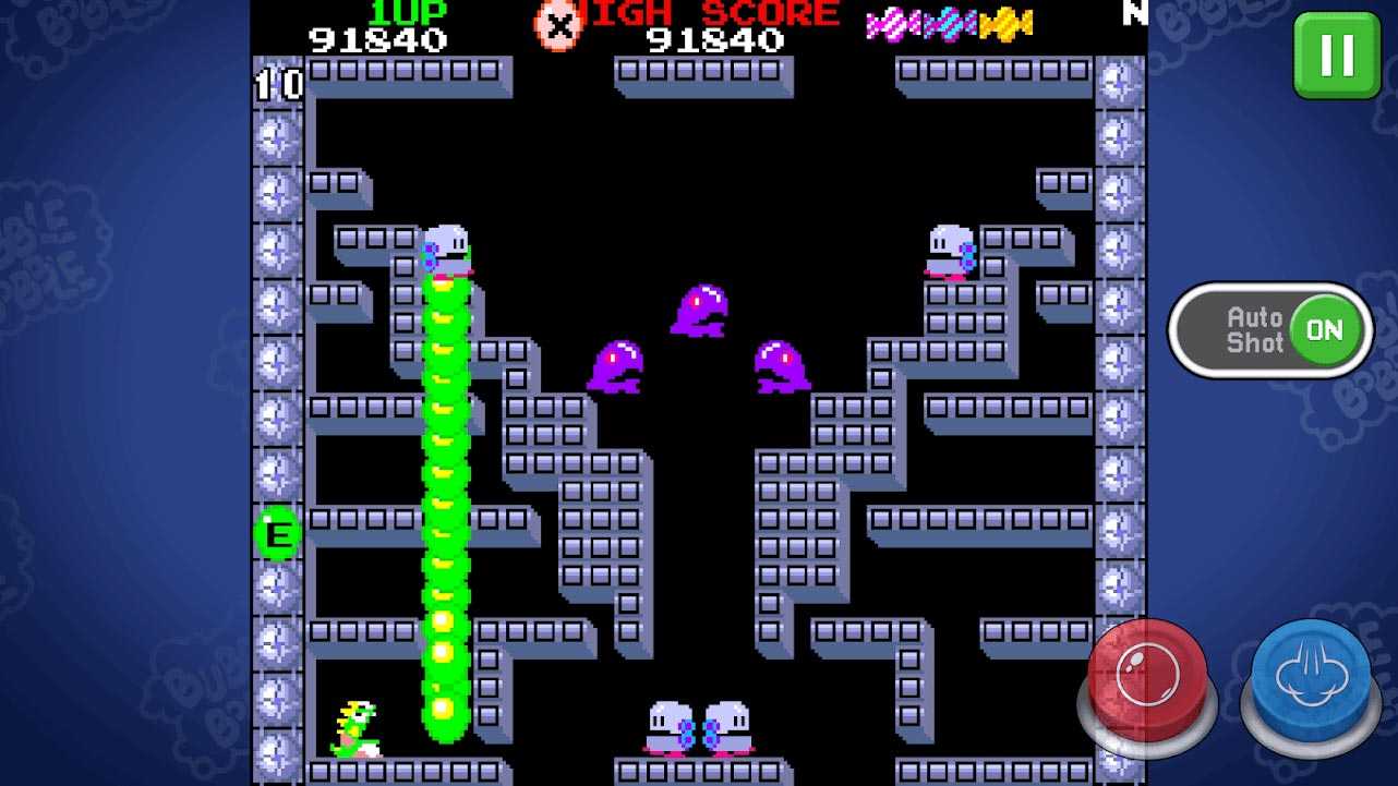 BUBBLE BOBBLE classic – это забавная мобильная аркада, в которой вам предстоит захватывать врагов с помощью пузырей и побеждать их. Перемещайтесь по игровому экрану, проверяя свою скорость реакции и не попадаясь на уловки соперников. Раздувайте пузыри автоматической стрельбой, собирайте выпадающие из поверженных монстров предметы и копите дополнительные жизни – они пригодятся вам на особо сложных уровнях.