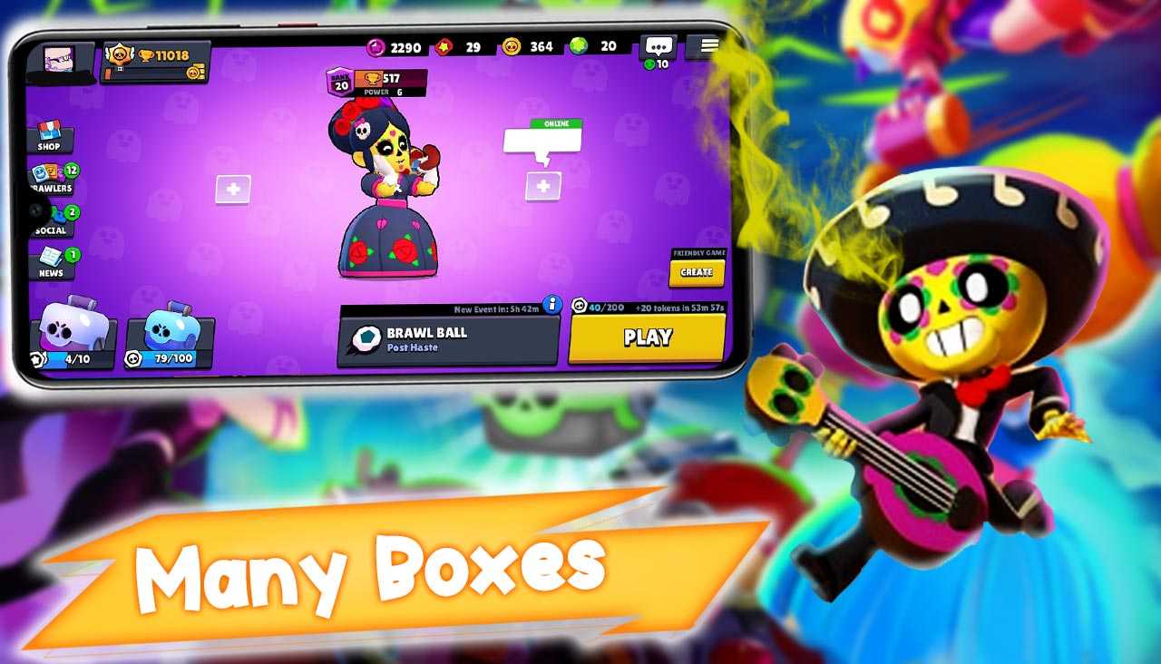 Box Simulator For Brawl Stars – это отличный мобильный симулятор открытия ящиков, позволяющий вам получить море ярких эмоций от разнообразия игрового контента. Сразитесь с игроками со всех концов планеты и займите лучшие места в лидерской таблице чтобы доказать свое мастерство. В куче коробок здесь вы найдёте уникальные улучшения для своих героев, ценную валюту и ещё много всего интересного. Попробуйте собрать все коллекции и испытать их в бою – вы точно найдёте немало неожиданных вещей, некоторые из них станут настоящими открытиями.Информация об игре