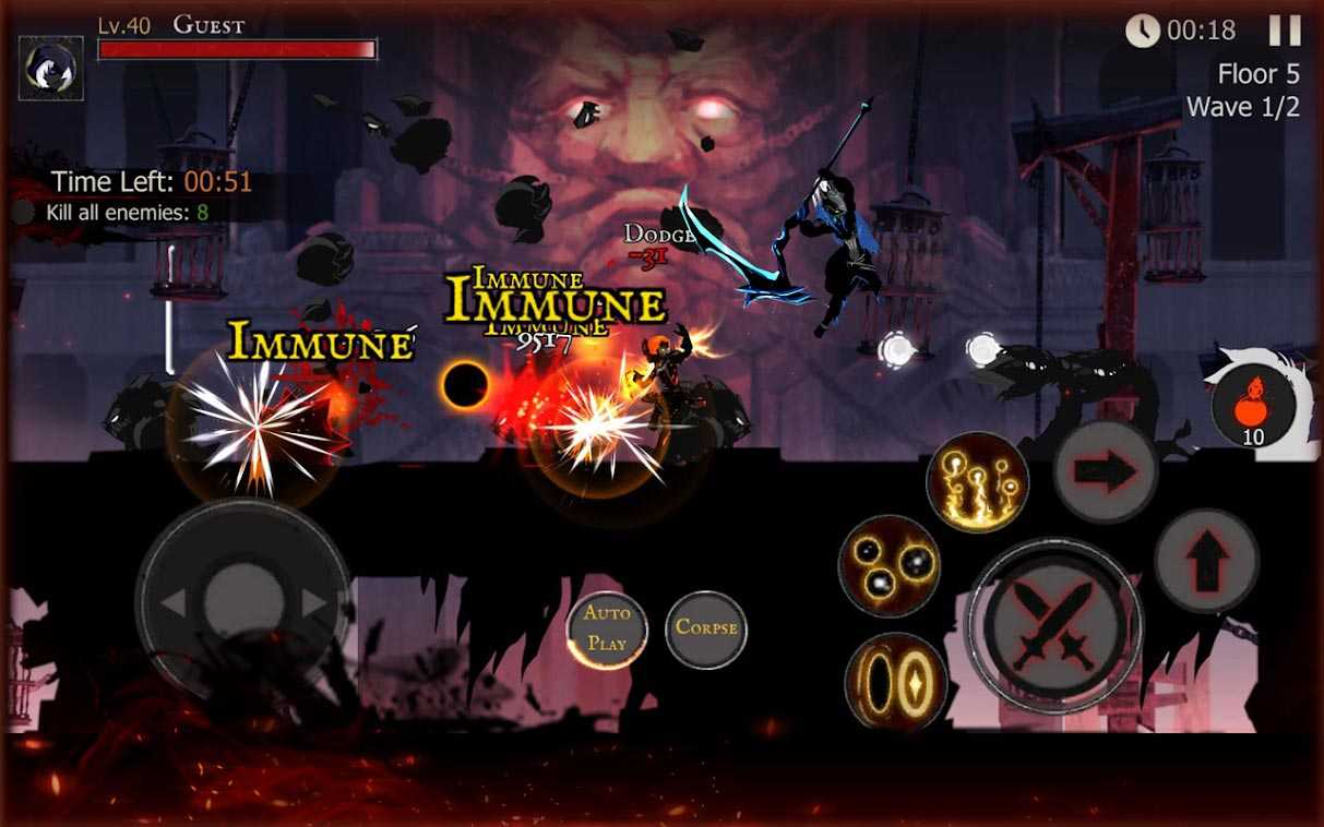 Shadow of Death: Dark Knight – это крутой мобильный файтинг в стиле фэнтези. Здесь вы окажетесь в загадочном мире теней, таящем в себе множество опасностей. Выбирайте героя из четырех могучих рыцарей и отправляйтесь в бой. Выстраивайте свой игровой стиль и стратегию, одевайте подходящий комплект брони и становитесь непобедимым воином. Для игры не требуется подключение к интернету, так что эпичные сражения ждут вас в любом удобном месте.