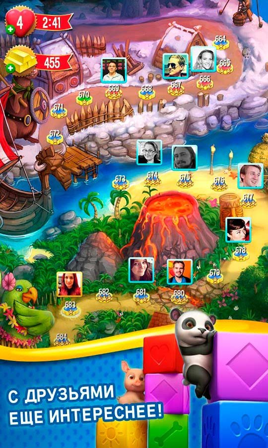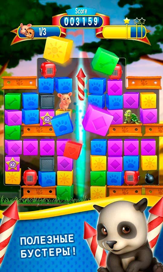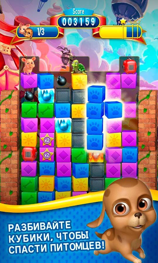 Игроку необходимо будет применить все свои навыки и умения, чтобы пройти через сотни головоломок. Собирайте красочные предметы в комбинации и продвигайтесь по системе рейтинга. Проверяйте, на что вы способны в такой красивой игре и набирайте как можно больше очков. Можете играть без подключения интернета, а в отдельных случаях подключаться и соревноваться в умениях со своими друзьями. Набирайте как можно больше очков, за которые потом сможете открыть новеньких удивительных персонажей в виде шикарных питомцев. Вам обязательно помогут бустеры, которые можно получить за мощные линии три в ряд и выше.