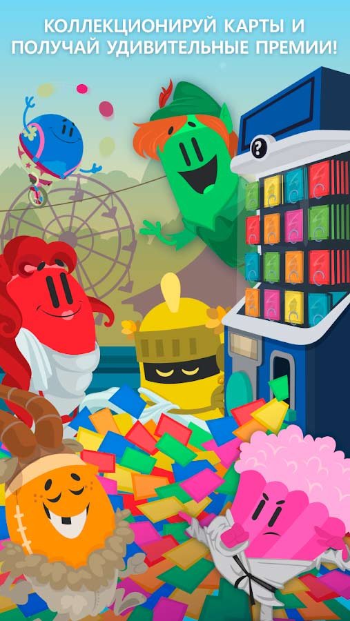 Собирайте собственную разнообразную коллекцию из сотен карточек, а потом отправляйте их в свой собственный альбом. В любой момент можно будет просмотреть их и снова насладиться забавными видами. В этой игровой викторине вместе с вами участвовать будет улитка по имени Уилли, и он еще тот весельчак. Когда приступите к ответам на вопросы викторины, вам будет предложено сразу шесть оригинальных категорий. В них нужно выигрывать короны, которые начнут продвигать вас по системе рейтинга. Кроме этого, в случае поражения можно запросить реванш и если соперник будет согласен попытаться переиграть уровень.