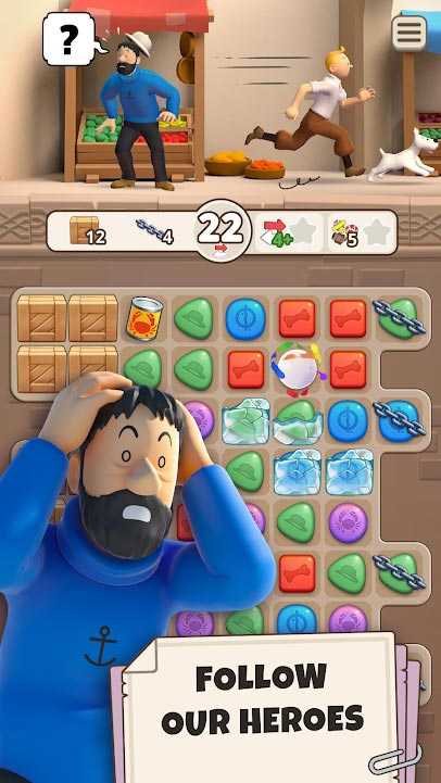 Tintin Match – это красочная мобильная игра с персонажами популярного мультфильма, где вас ждут увлекательные головоломки. Выполняйте задания и открывайте новые удивительные локации, чтобы исследовать их вместе с Тинтином и его верным другом Сноуи. Классическая механика «три в ряд» давно знакома всем любителям жанра, а новички быстро в ней разберутся. Красочная графика, интересные загадки, колоритные персонажи, удобное управление и многие другие преимущества игры делают ее одной из лучших современных головоломок.Информация об игре