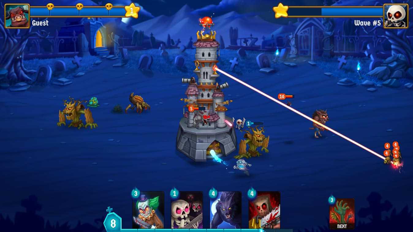 Spooky Wars – это занимательная мобильная стратегия с элементами жанра защиты башен. Возглавьте эпичную армию и ведите ее к победе с помощью уникальных военных хитростей. Собирайте и укрепляйте карты для усиления своих воинов, замка и огромного королевства. Объединяйте легендарных персонажей, делая их еще сильнее и пугающее. Сражайтесь на арене с многочисленными противниками и оттачивайте боевое мастерство. Выбирайте из трех режимов игры и соревнуйтесь с другими игроками за верхние строки лидерской таблицы.