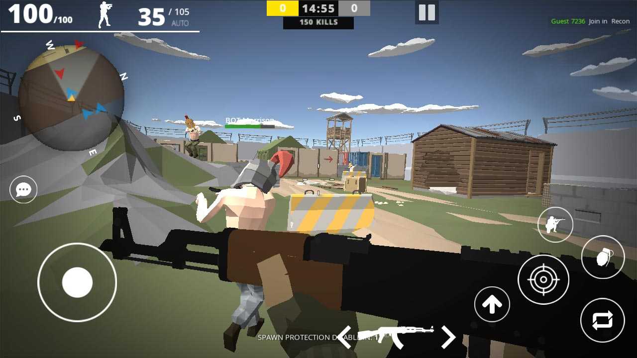 Modern Fury Strike – это сумасшедший экшен для мобильных платформ, отлично оптимизированный для слабых устройств. Незатейливая полигональная графика низкого разрешения с лихвой компенсируется широким арсеналом оружия и разнообразием карт, отправляя вас в каждый бой как в новую мясорубку. Хватайте пушку помощнее и бегите навстречу опасности, уничтожая по пути многочисленных противников, представленных игроками со всего мира.